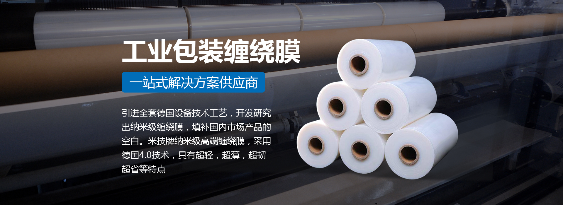 引進全套德國設備技術工藝,開發(fā)研究出納米級纏繞膜,填補國內市場產(chǎn)品的空白。米技牌納米級高端纏繞膜,采用德國4.0技術,具有超輕,超薄,超韌,超省等特點。